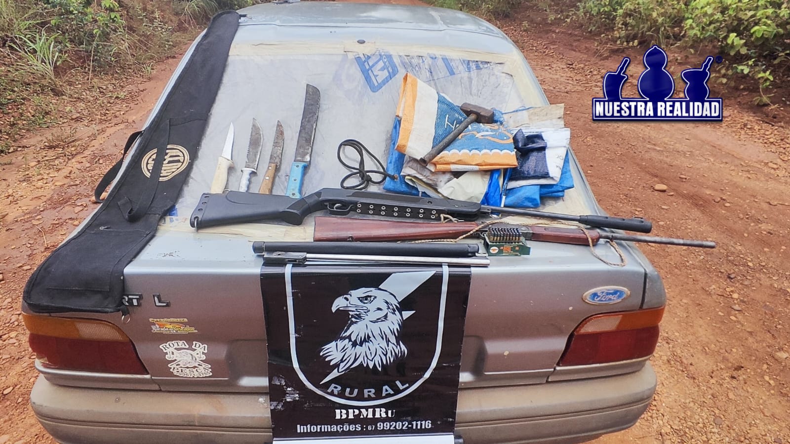 Durante a ação, os policiais localizaram duas espingardas calibre .22, sendo uma delas adaptada, além de 49 munições, facas, facão e outros objetos. Os envolvidos alegaram que utilizariam o armamento para proteção pessoal, porém não apresentaram documentação legal.