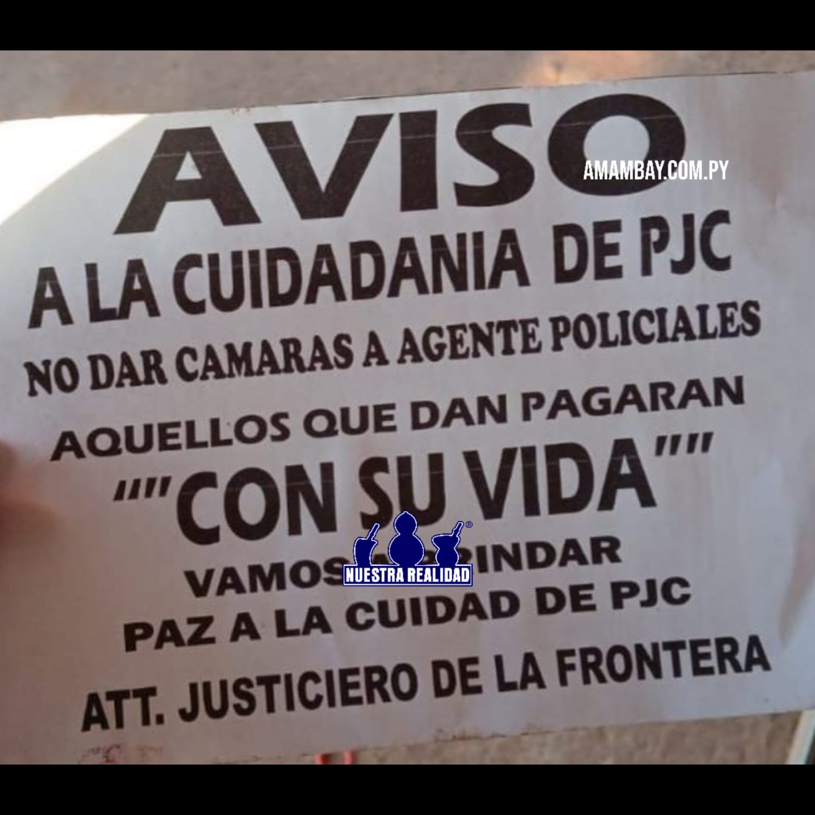 Na manhã desta quinta-feira (21), diversos comerciantes do Bairro Obrero, em Pedro Juan Caballero, foram surpreendidos com um panfleto deixado em frente a estabelecimentos da região. O material, de origem ainda não confirmada, estaria assinado por um grupo que se autodenomina “Justicieros da Fronteira”.
