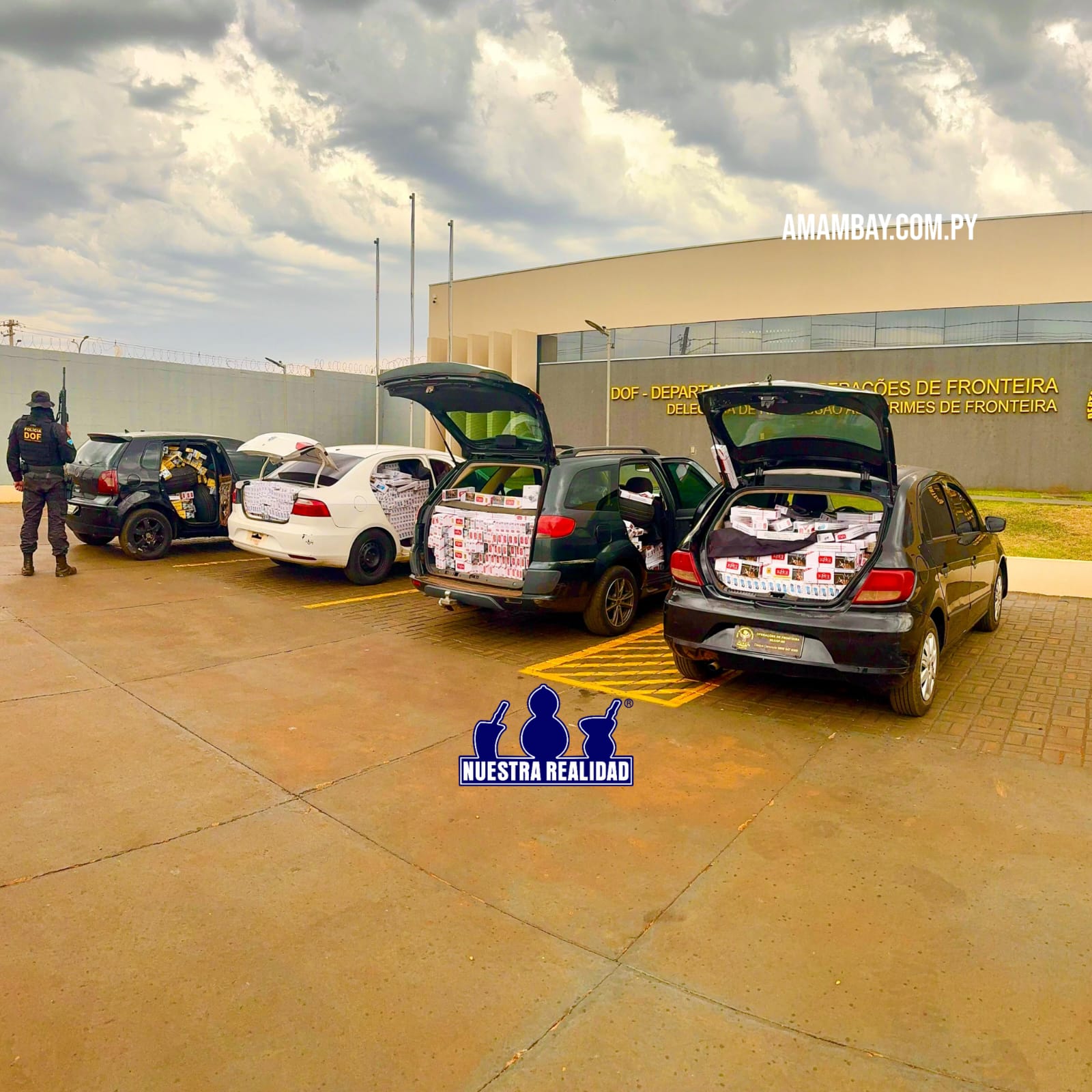 Os militares faziam bloqueio na MS-164, zona rural do município, quando interceptaram um Fiat Palio Weekend, um VW Voyage, um VW Polo e um VW Gol. Em vistoria nos veículos foram encontrados 3.500 pacotes de cigarros, 28 pneus e 16 drones.
