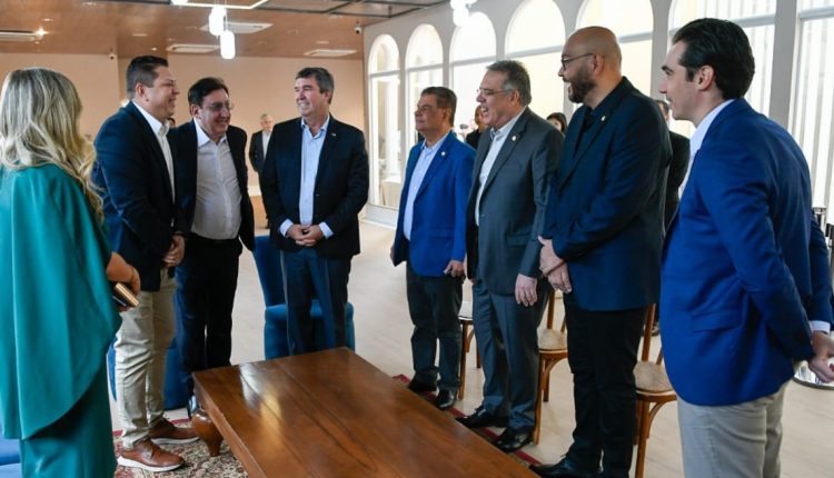 O governador Eduardo Riedel participou nesta quinta-feira (4) da inauguração do novo empreendimento comercial em Pedro Juan Caballero, o Shopping Dubai. Ele fica na fronteira entre Brasil (Ponta Porã) e Paraguai. Durante o evento destacou a parceria com o país vizinho para levar desenvolvimento e geração de empregos na região.