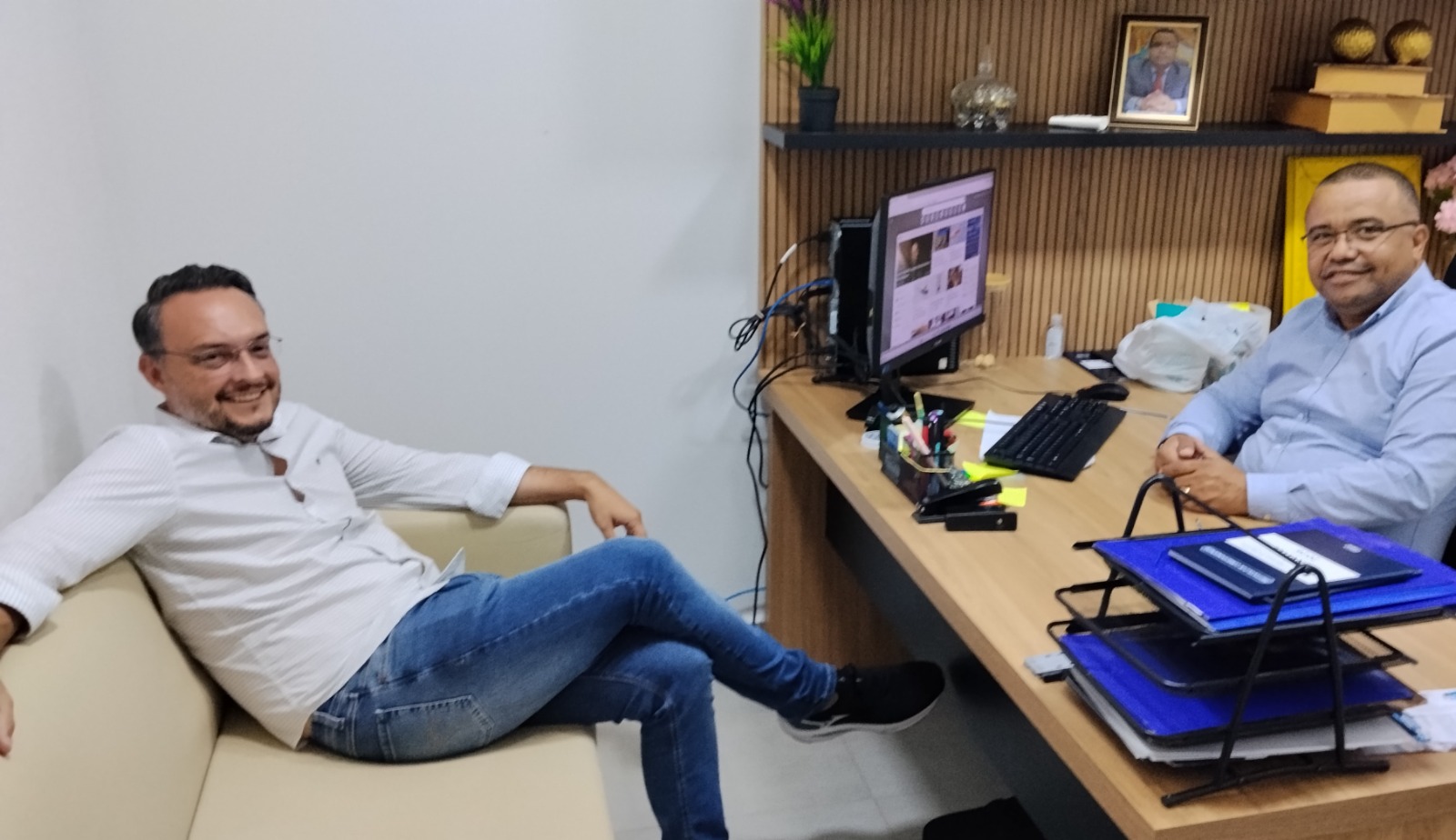 Durante a visita de cortesia, Raphael Modesto compartilhou reflexões sobre a função parlamentar, ressaltando os avanços e conquistas do Legislativo municipal ao longo dos últimos anos.