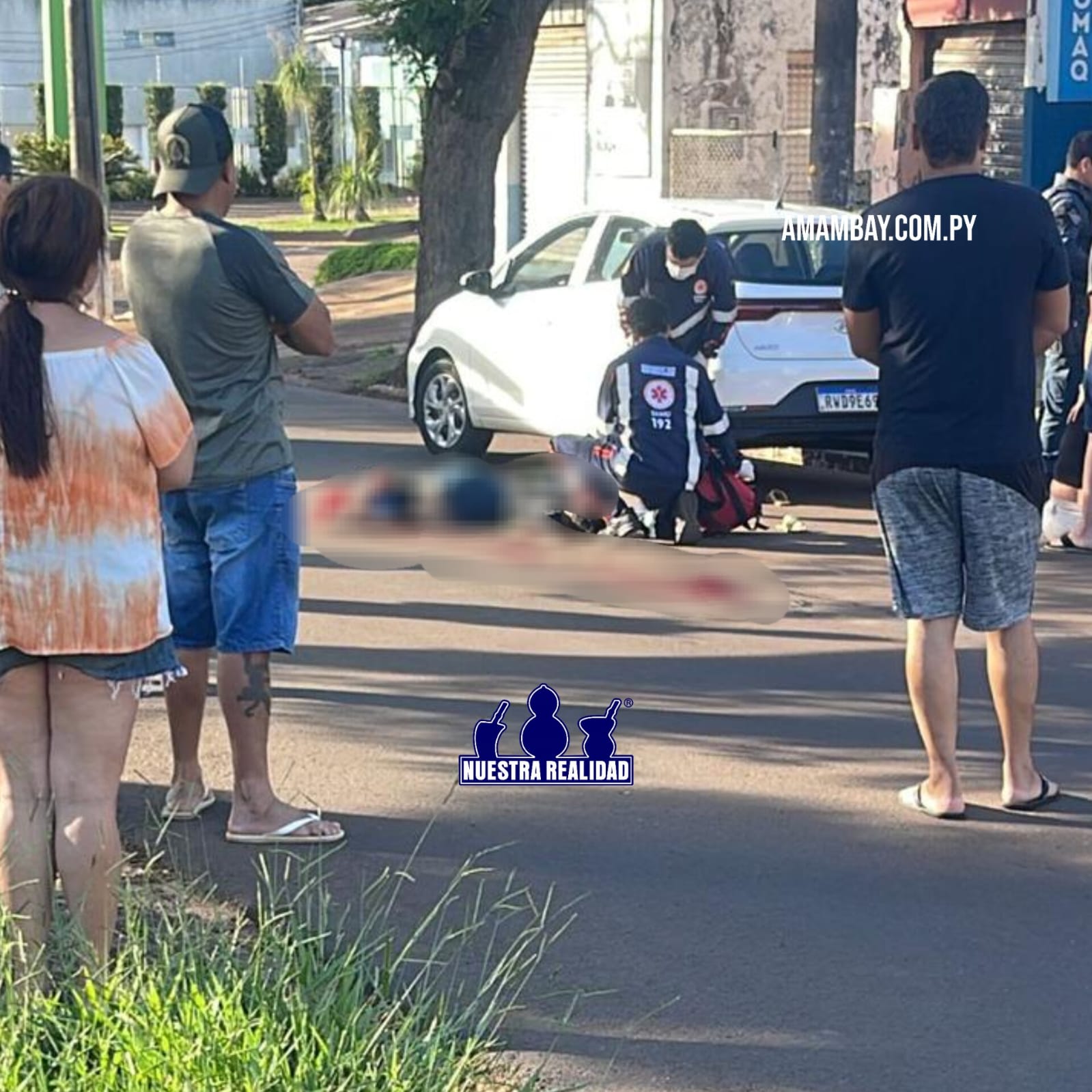 Mãe e filho seguiam em motocicleta conduzida pelo pai e colidiram com caminhão na Avenida Marechal Floriano Peixoto, centro de Ponta Porã.
