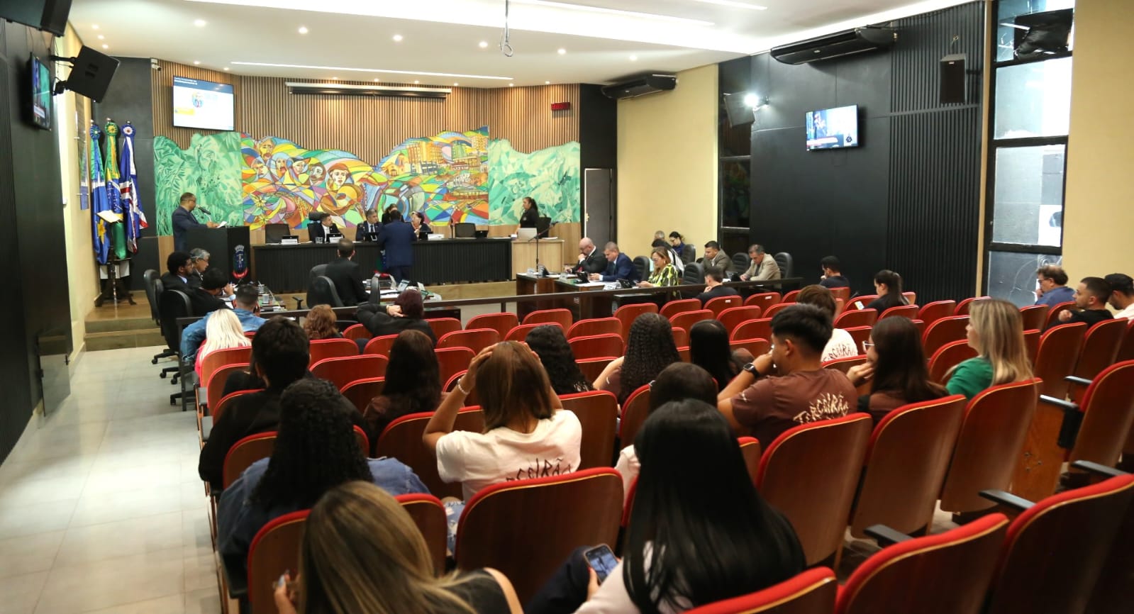 Grupo de alunos do terceiro ano da Escola Estadual “Adê Marques” acompanhou a sessão ordinária desta terça-feira, 19.